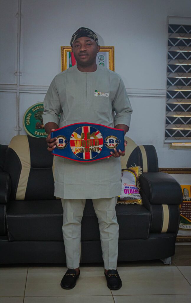 Hon. Oluwaseun Olufade welcomed the victorious boxer, an illustrious son of Ward 5, Ibadan North who recently clinched the prestigious LBO World Title after defeating UK-based Nigerian fighter, Abdulahi Habeeb, in a thrilling contest held in Lagos, Nigeria.
