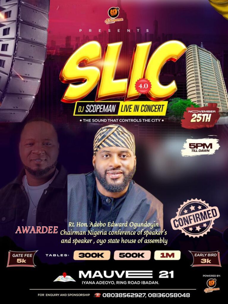 With the full backing and presence of Speaker Debo Ogundoyin, Hon. Adebowale Falana, and a star-studded lineup set to shake the city, tonight’s SLIC 4.0 Concert is primed to deliver a nightlife explosion bigger than anything Ibadan has witnessed since Davido’s tour stop.